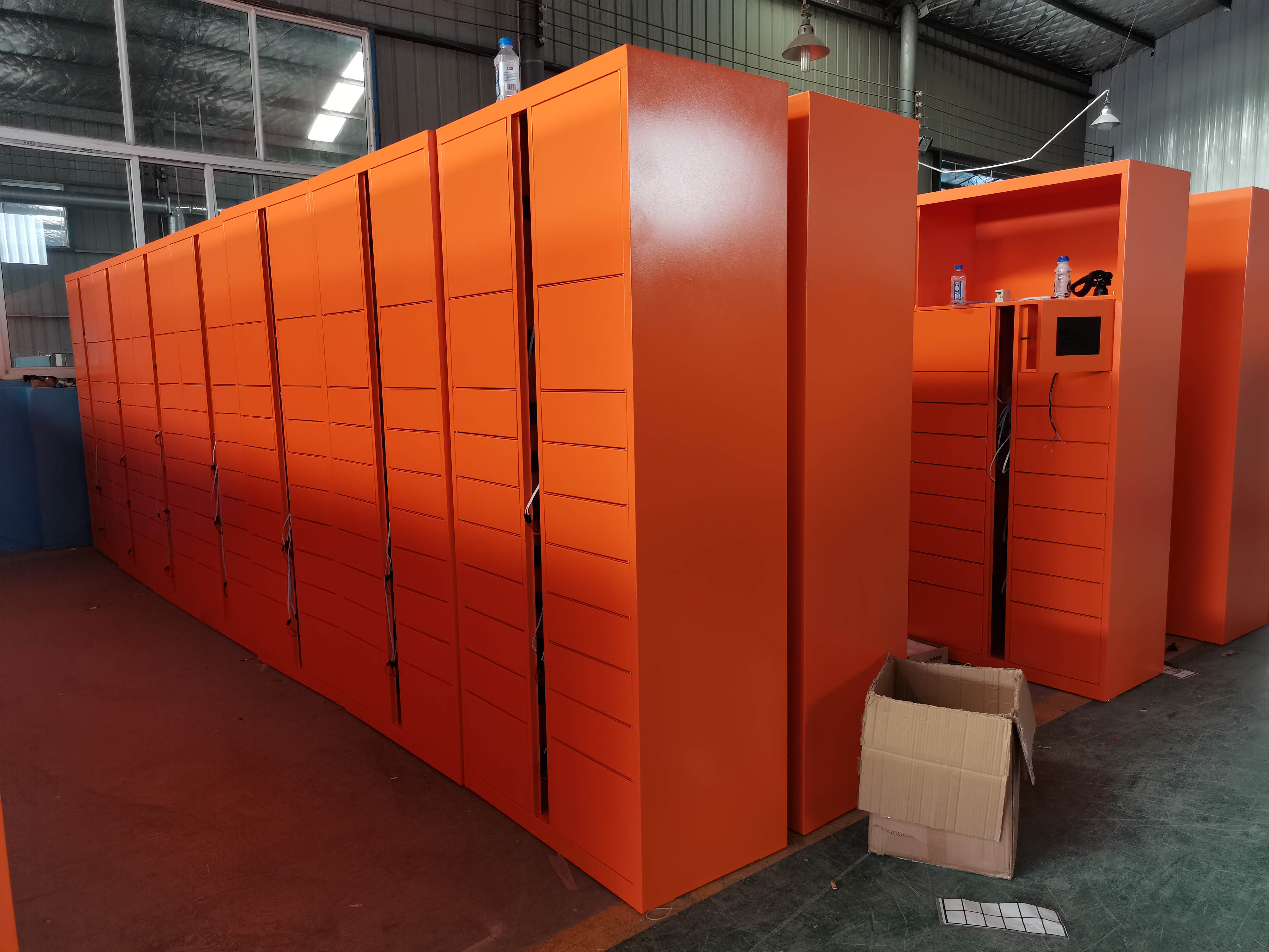 產品名稱:智能快遞柜 屏幕:10.1寸、21.5寸 外觀:主柜+副柜(1+n,可加多組副柜) 尺寸: 1980*900*500 mm(可定制) 材質:加厚型冷軋鋼材質 工藝:靜電無磷粉末噴涂 質保:質保一年,終身運維 系統: Android